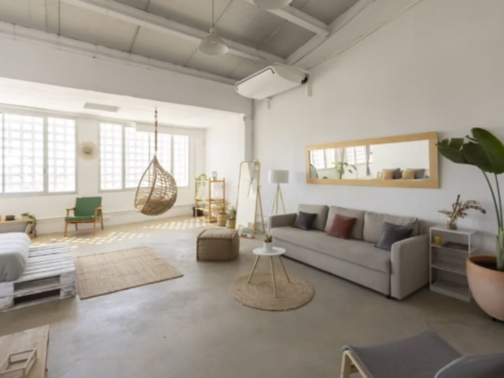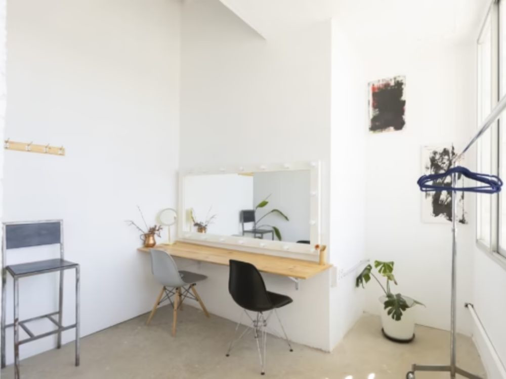 Perfecto para grabaciones, entrevistas o sesiones con luz natural. Espacio cómodo y privado, con camerino, baño y vestuario.